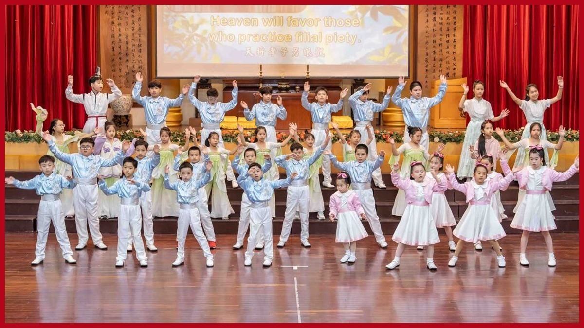 《百孝經》英文歌曲,以淺白有力的語句,闡述孝順父母不僅在於奉養衣食,更在於言行恭敬、心存體諒,並提醒「行孝須及時」,父母在世時的關懷與陪伴,才是真正圓滿的孝行。透過孩子們用心演唱與整齊呈現,讓觀眾深刻體會孝道並非沉重的責任,而是一種溫柔而堅定的力量,能安定人心、淨化社會風氣。
